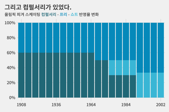 피겨 초창기에 컴펄서리 60%, 프리 40% 비율로 최종 순위를 정했습니다.