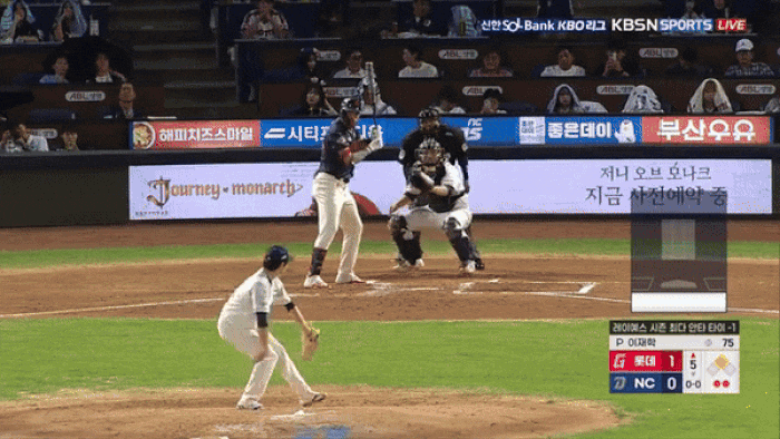 이어 나승엽(22)이 2루타를 치고 나가면서 레이예스는 1사 2루 상황에 타석에 들어섰습니다.