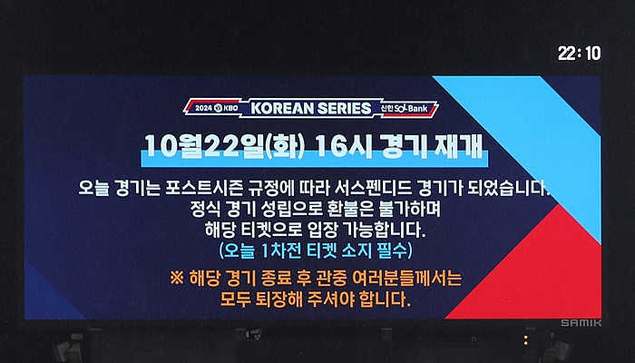 마침표를 찍지 못한 이 경기는, 첫 번째 사진에서 보신 것처럼, 22일 오후 4시부터 이어서 진행합니다.